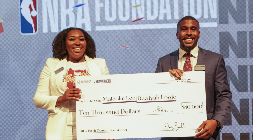 HBCU entrepreneurs Daa’iyah Fogle and Malcolm Lee Earn $10K prize at NBA Foundation’s first-ever Pitch Competition with Black Girl Ventures.